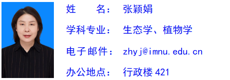 张颖娟,女,汉族,1970年生,呼和浩特人,理学博士,yl6809永利官网集团教授,硕士生导师。主要研究领域为植物生态学,恢复生态学,学科教学(生物)等。主持国家自然科学基金项目1项、省部级科研项目10余项。发表研究论文30余篇,出版学术著作3部。