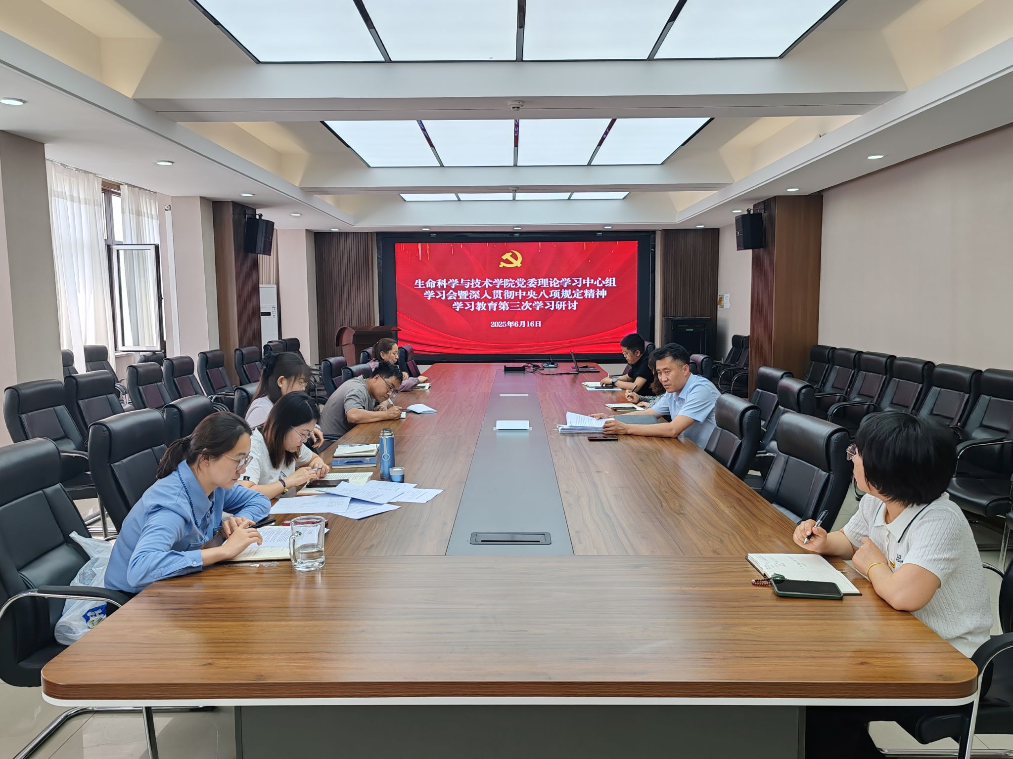 6月16日上午,学院党委召开党委理论学习中心组2025年第9次学习会暨深入贯彻中央八项规定精神学习教育第三次学习研讨。学院党委中心组成员、各党支部书记参加会议。