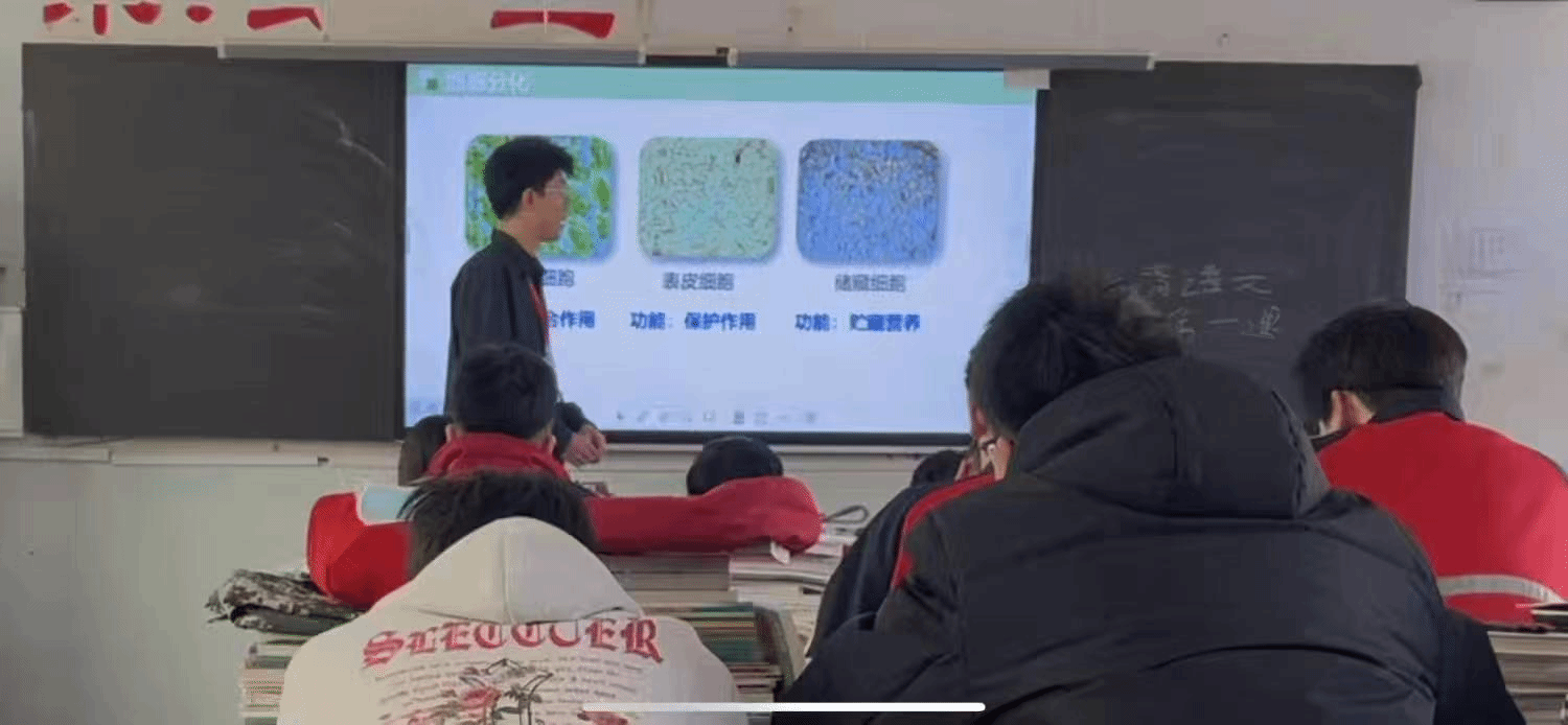 初登讲台的同学们虽青涩却充满斗志,以谦逊态度投入集体备课、教材研讨等教研活动,积极承担公开课打磨、校本课程开发等实践任务。图片记录了杨利珍、曹鹏越、冯今扬等同学在课堂上挥洒自如的教学风采。