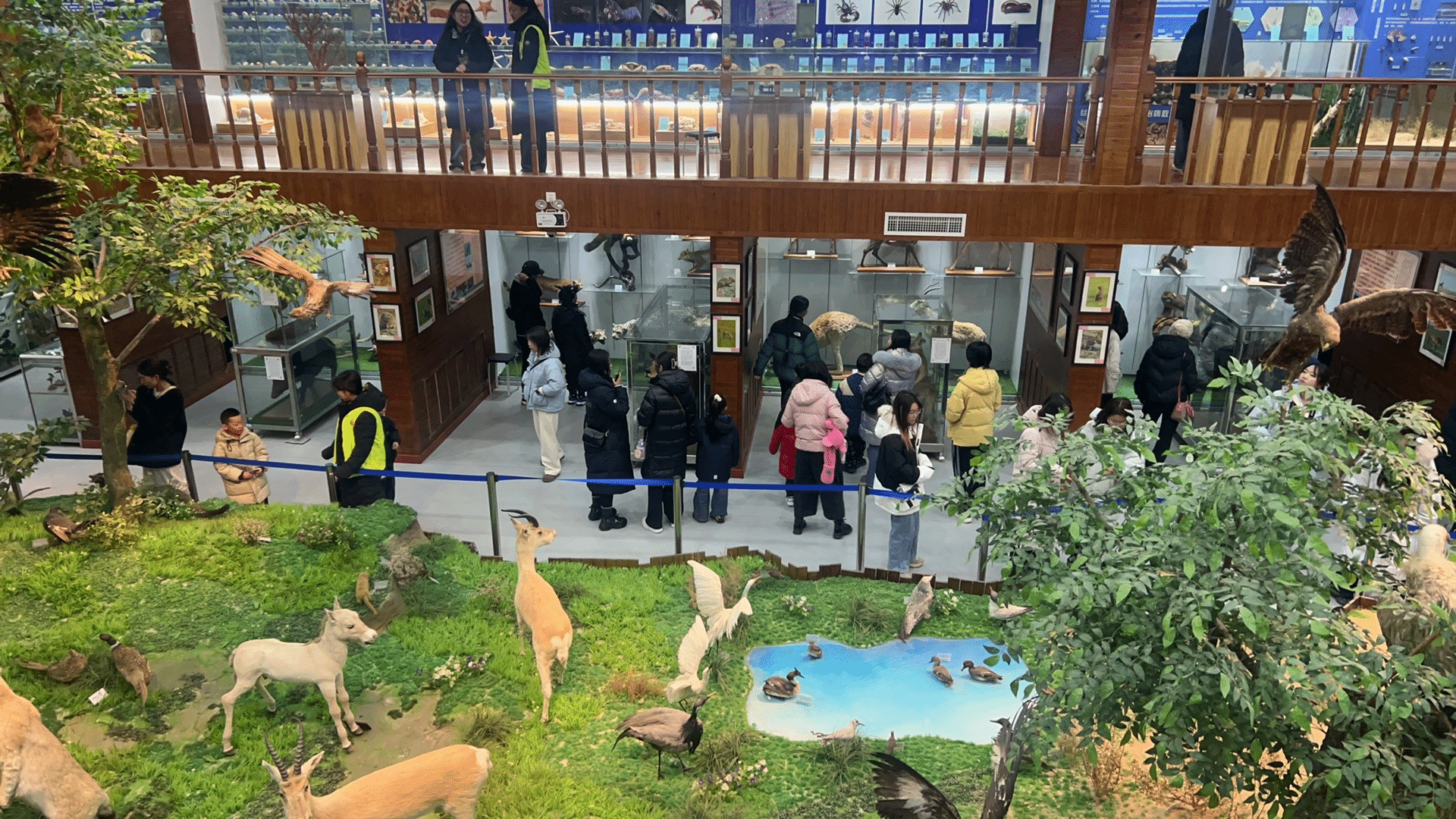 公众在学生志愿者引导下有序进入生物标本馆主展厅参观。作为目前自治区收藏最丰富、最具蒙古高原特色的综合性生物标本馆,馆内近50万号珍贵标本构成了立体的生命百科全书。参观者们漫步于展厅,近距离观摩了从草原代表性动物到各类植物、昆虫的丰富标本,纷纷驻足拍照、认真聆听学生志愿者的讲解。许多家长带着孩子前来,将这里作为生动的“第二课堂”。“看到这么多真实的标本,孩子对课本上学到的知识理解得更深刻了,也激发了她对自然的好奇心。”一位带着女儿参观的母亲如是说。活动现场秩序井然,文明参观蔚然成风。