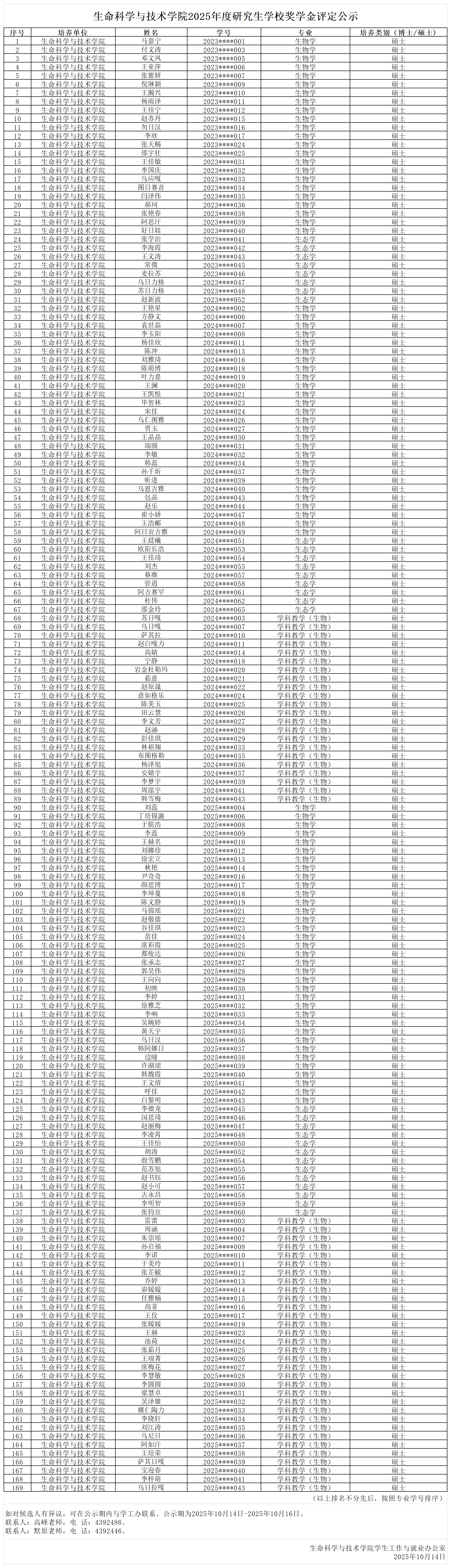 yl6809永利官网集团2025年度研究生学校奖学金评定公示