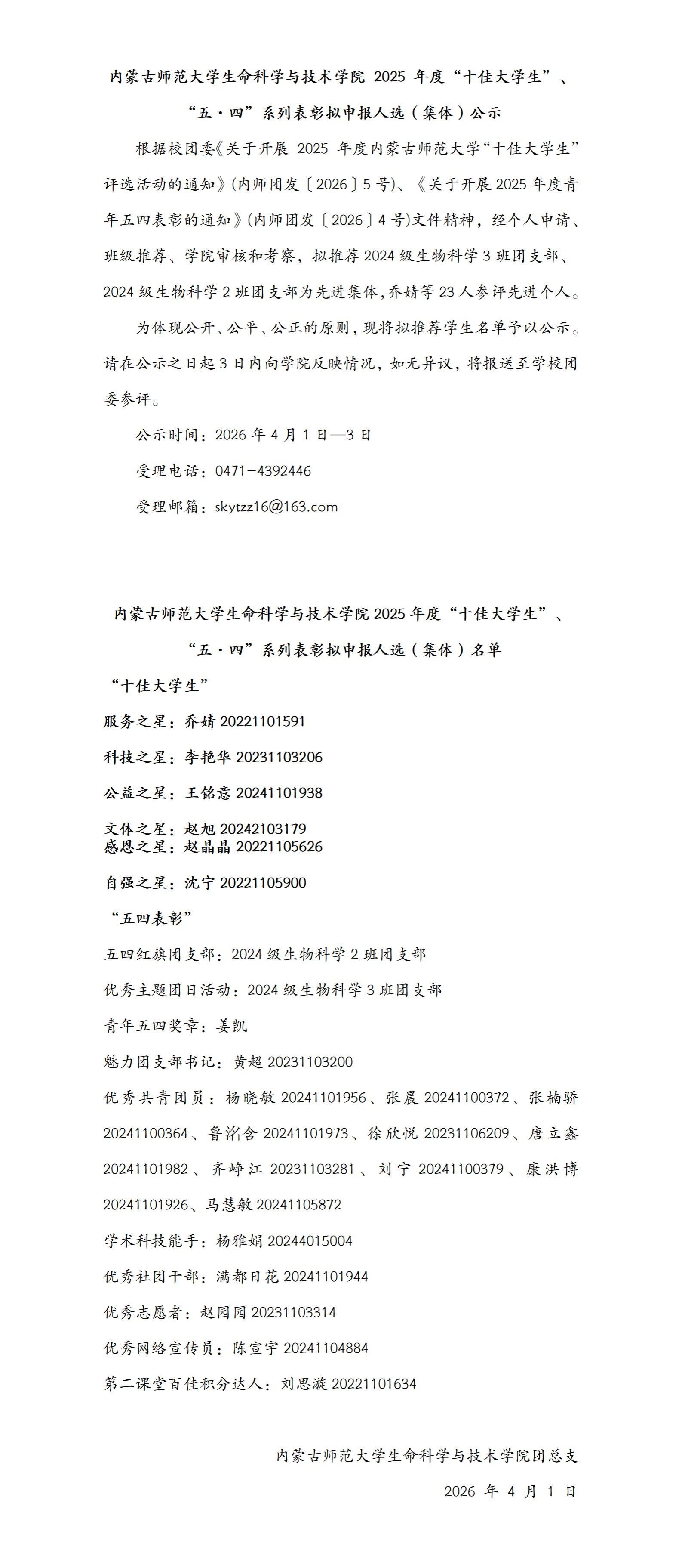 yl6809永利官网集团 2025 年度“十佳大学生”、“五·四”系列表彰拟申报人选(集体)公示